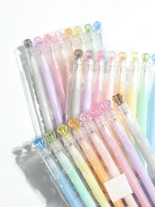 Biromes con tapitas con mini diamantes de colores.. Contiene 8 colores.
