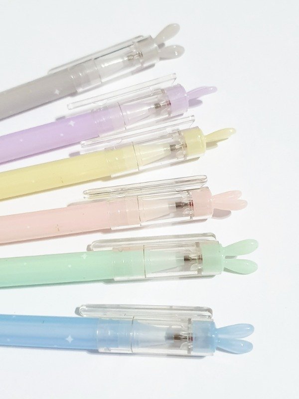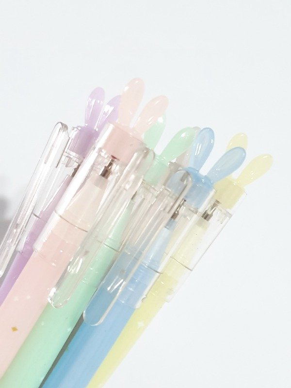 Biromes con tapitas con orejitas de conejo de colores.. Contiene 6 colores.