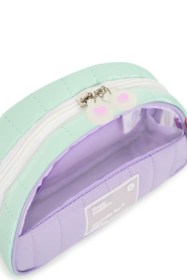 Organizador twist Moderno y funcional, combina textil matelassé brillante con un compartimento principal de PVC transparente con cierre, ideal para visualizar fácilmente el contenido. Cuenta con cierre de nailon y doble tirador, que aportan practicidad y resistencia en el uso diario.