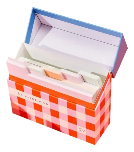 Este fichero viene con 100 fichas de 220 gr, robustas y listas para aguantar todo el trajín diario, 20 fichas de cada color para que puedas clasificar todo con estilo y sin perder tiempo buscando.