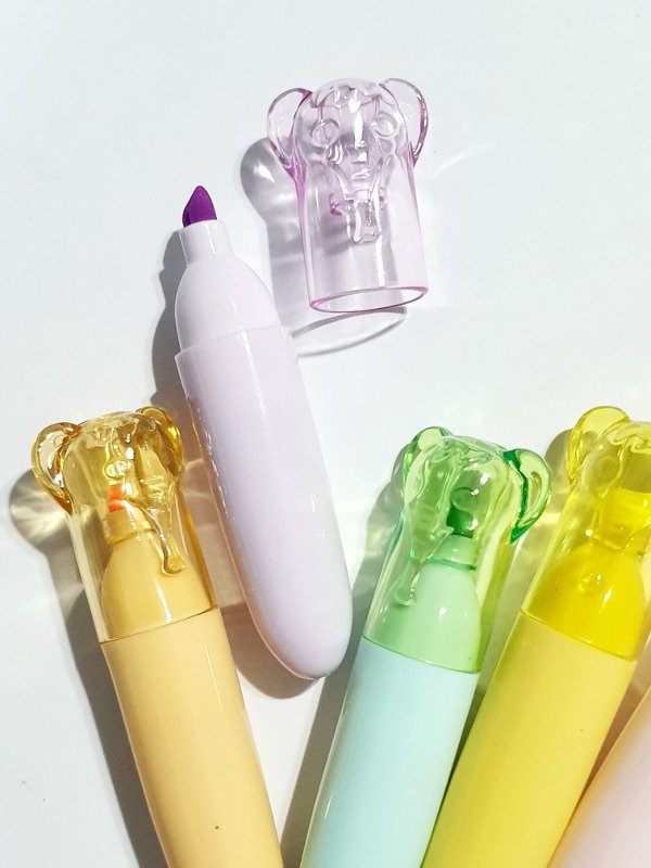 Simpáticos resaltadores con tapas de elefantitos.