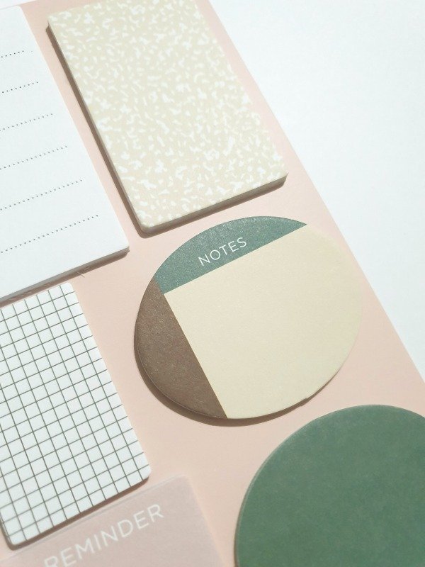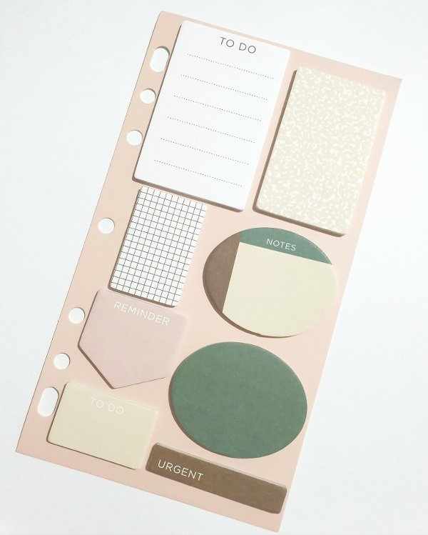 Set de 8 notas diferentes con una base perforada para anexar a tu carpeta, cuaderno o genda.