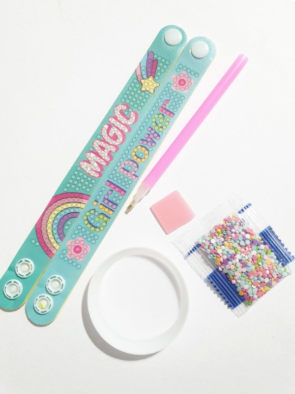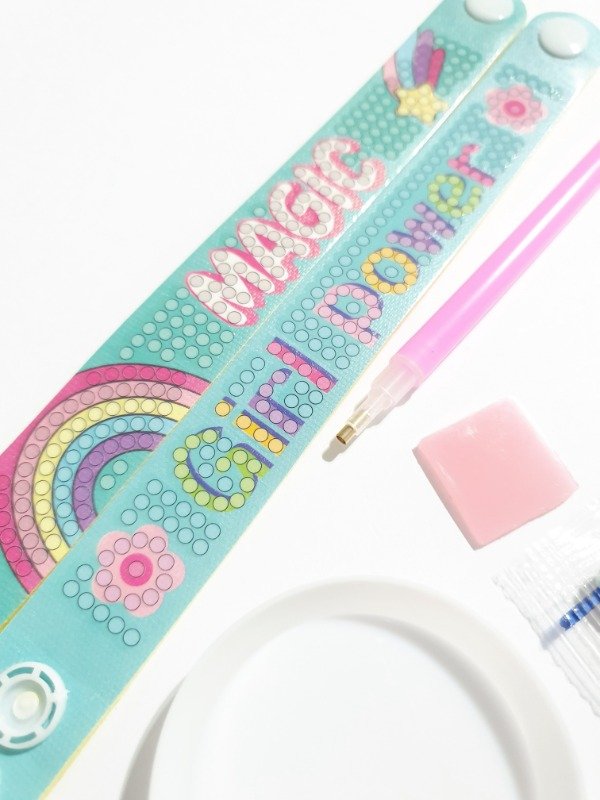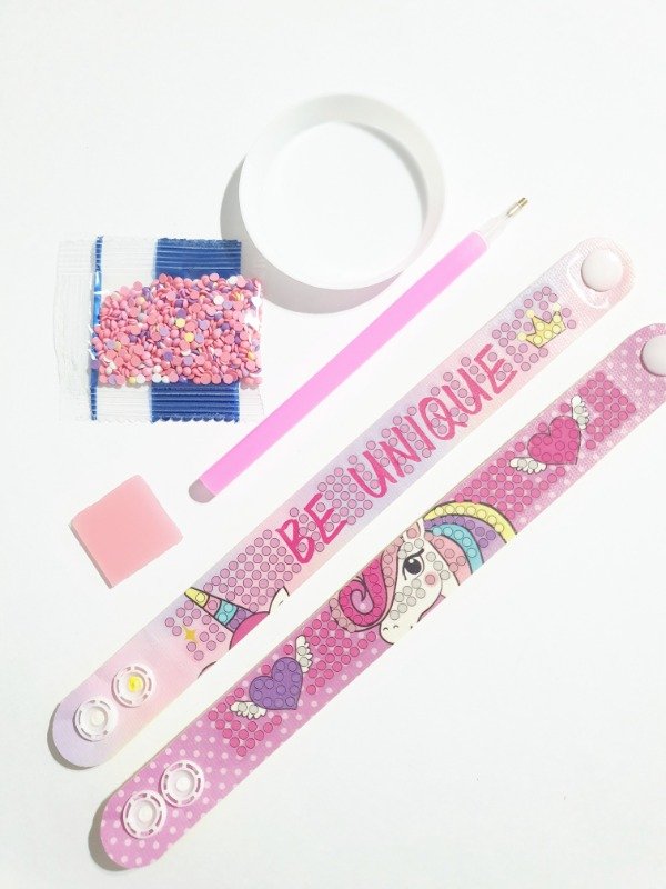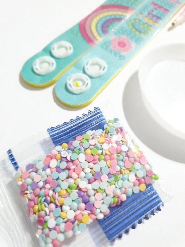 Juego de dos pulseras para decorar con piedritas de colores.